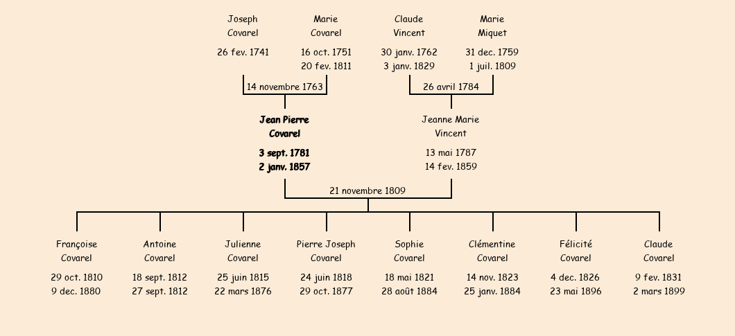 Epoux : Jean Pierre Covarel, fils de feu Joseph et de Marie Covarel |