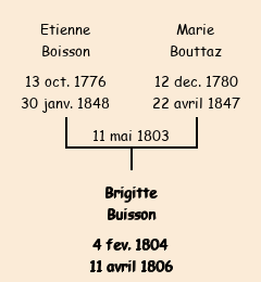 Père : Etienne Buisson, fils de Urbain | Parrain : Pierre Antoine Bouttaz (fils de François décédé) |