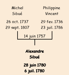 Mère : Philippine Vincent | Marraine : Jeanne Sibué (fille d'Alexandre) |