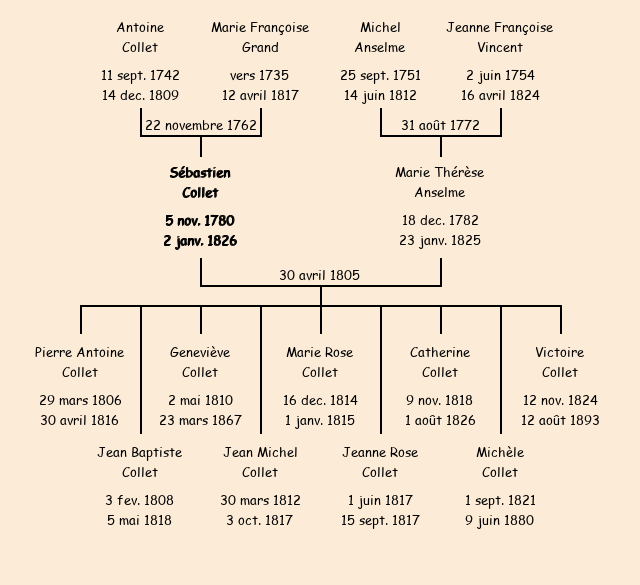 Epoux : Sébastien Collet, fils de Antoine et de Marie Françoise Grand |