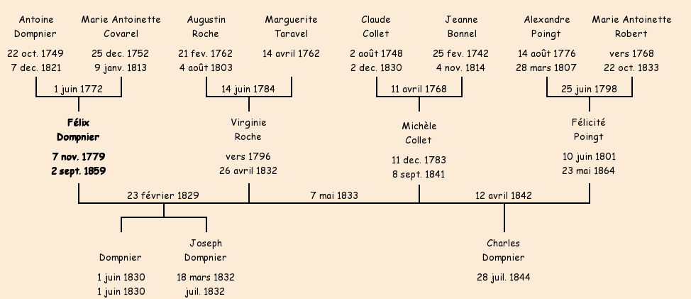 Epoux : Félix Dompnier, fils de feu Antoine et de Marie Antoinette Covarel |