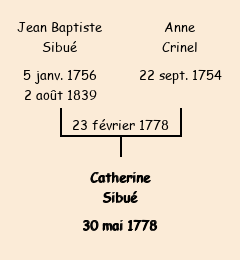 Mère : Anne Crinel | Marraine : Catherine Domenjon (épouse de Jean Sibué) |