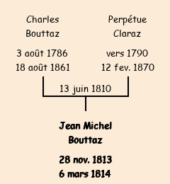 Père : Charles Bouttaz, fils de Jean Michel | Parrain : Jean Michel Bouttaz (grand-père paternel) |