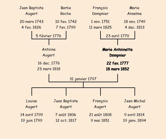 Epouse : Marie Antoinette Dompnier, fille de François et de Marie Anselme |