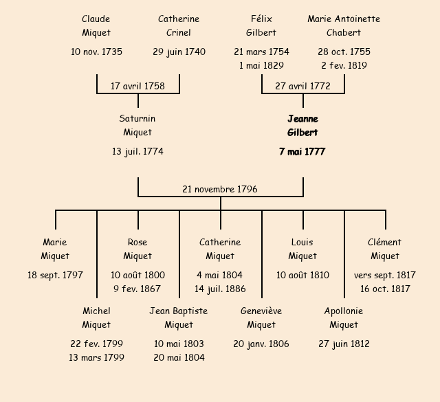 Epoux : Saturnin Miquet, fils de Claude et de Catherine Crinel |