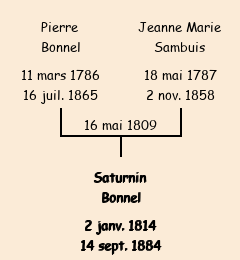 Père : Pierre Bonnel, fils de Alexandre | Parrain : Saturnin Vincent (fils de Michel) |