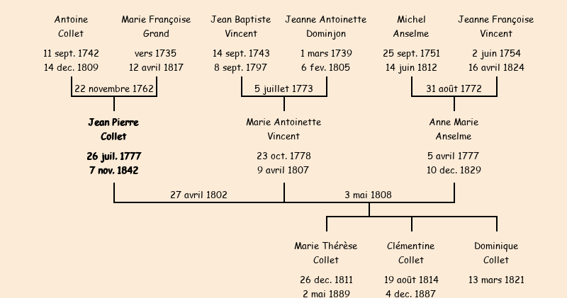 Epoux : Jean Pierre Collet, fils de Antoine et de Marie Françoise Grand |
