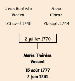 Père : Jean Baptiste Vincent | Parrain : Pierre Vincent (fils de Jean décédé) |