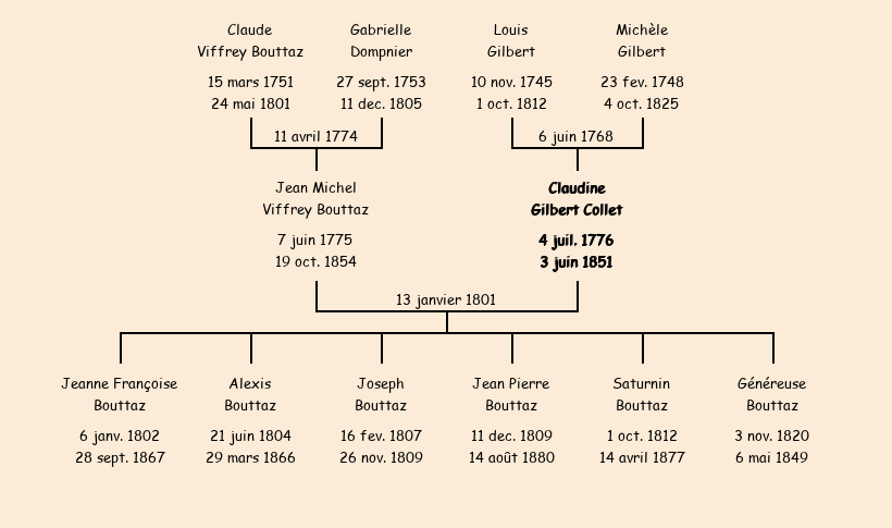Mariée (24 ans) avec Jean Michel Viffrey Bouttaz (25 ans) le 13 janvier 1801 à Fontcouverte ![]() |