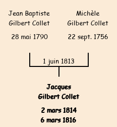 Père : Jean Baptiste Gilbert Collet, fils de Louis | Parrain : Jacques Gilbert Collet (oncle du baptisé) |