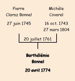 Père : Pierre Bonnel | Parrain : Michel Bonnel (fils de Gaspard décédé) |