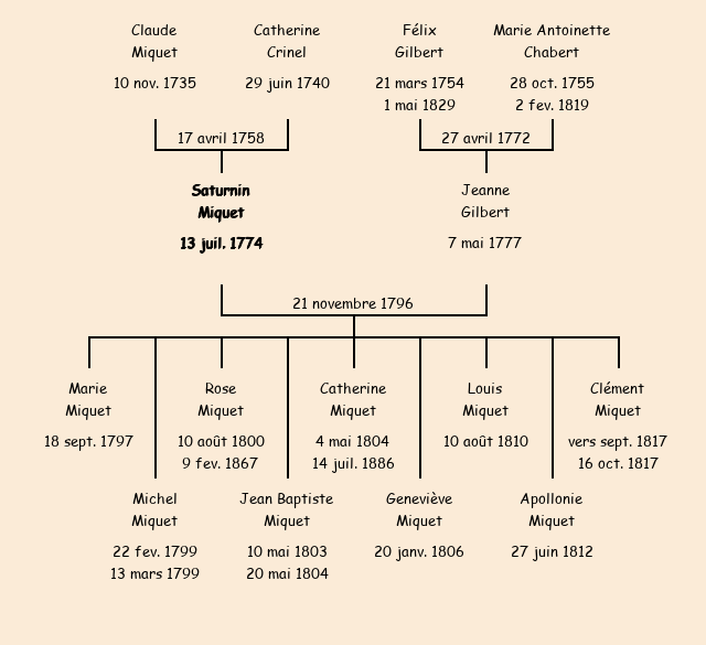 Epoux : Saturnin Miquet, fils de Claude et de Catherine Crinel |