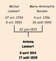 Père : Michel Lambert, fils de Antoine | Parrain : Antoine Lambert (grand-père paternel) |