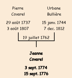 Mère : Urbaine Bullière | Marraine : Jeanne Covarel (fille de Jean Baptiste) |