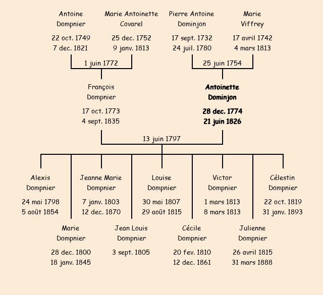 Epouse : Antoinette Dominjon, fille de feu Pierre Antoine et de Marie Viffrey |