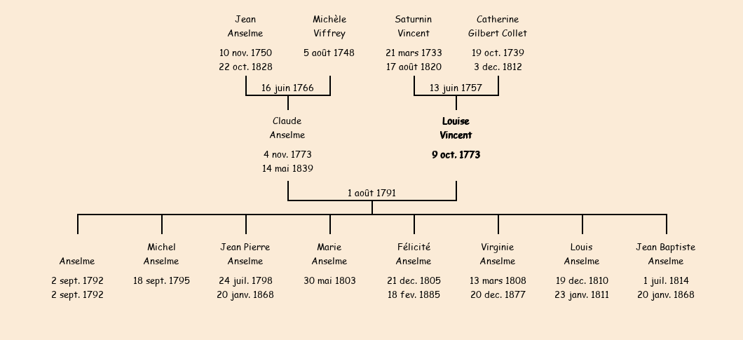 Epouse : Marie Louise Vincent, fille de Saturnin et de Catherine Gilbert Collet |