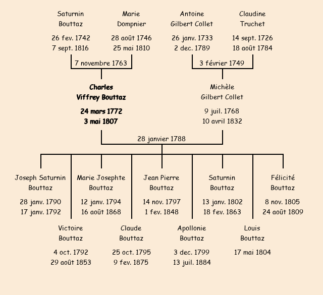 Epoux : Charles Bouttaz, fils de Saturnin (notaire royal) et de Marie Dompnier |