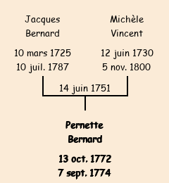 Mère : Michelette Vincent | Marraine : Pernette Bernard (fille de Pierre) |