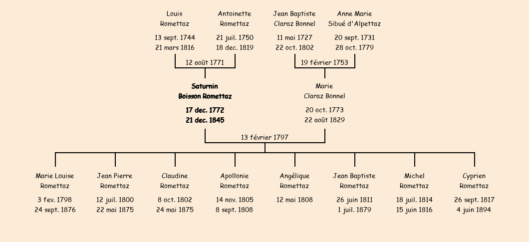 Epoux : Saturnin Romettaz, fils de Louis et de Antoinette Romettaz |