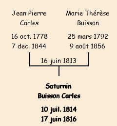 Père : Jean Pierre Buisson Carles, fils de Jean Baptiste | Parrain : Saturnin Buisson (fils de Michel) |