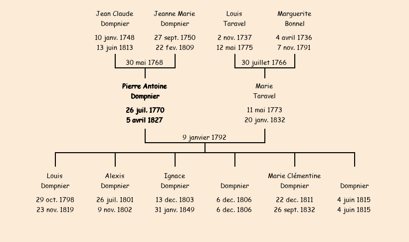Epoux : Pierre Antoine Dompnier, fils de Jean Claude et de Jeanne Marie Dompier |