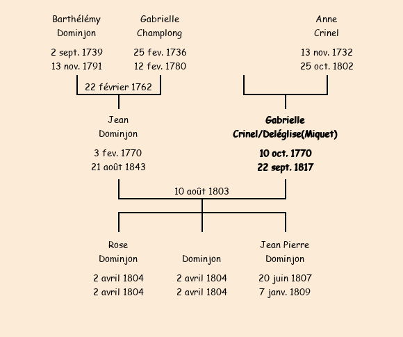 Epouse : Marie Crinel (fille naturelle, veuve de Claude Miquet), fille de feue Anne Crinel |