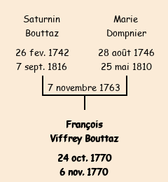 Père : Saturnin Viffrey Bouttaz (spectable notaire) | Parrain : François Viffrey Bouttaz |