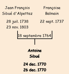 Père : Jean François Sibué | Parrain : Antoine Claraz (fils de Jean Baptiste) |