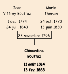 Mère : Marie Thorain, fille de Louis | Marraine : Marguerite Bouttaz (soeur de la baptisée) |