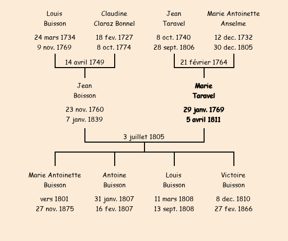 Epouse : Marie Taravel, fille de Jean et de Marie Antoinette Anselme |