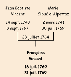 Mère : Marie Sibué | Marraine : Françoise Vincent (fille de Jean décédé) |