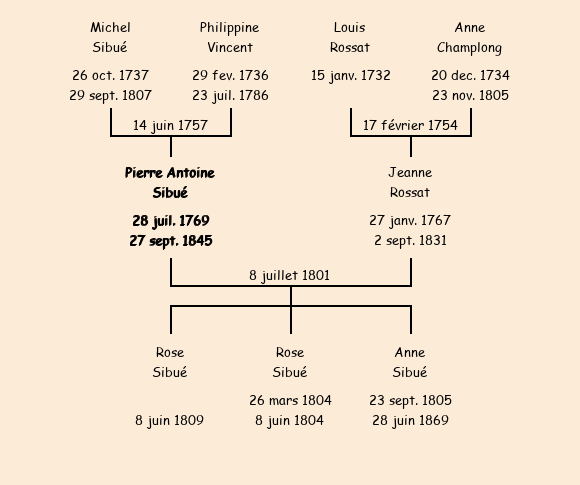 Epoux : Pierre Antoine Sibué, fils de Michel et de feue Philippine Vincent |