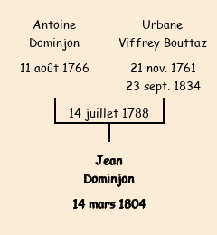 Père : Antoine Dominjon, fils de Barthélémy | Parrain : Pierre Viffrey Bouttaz |