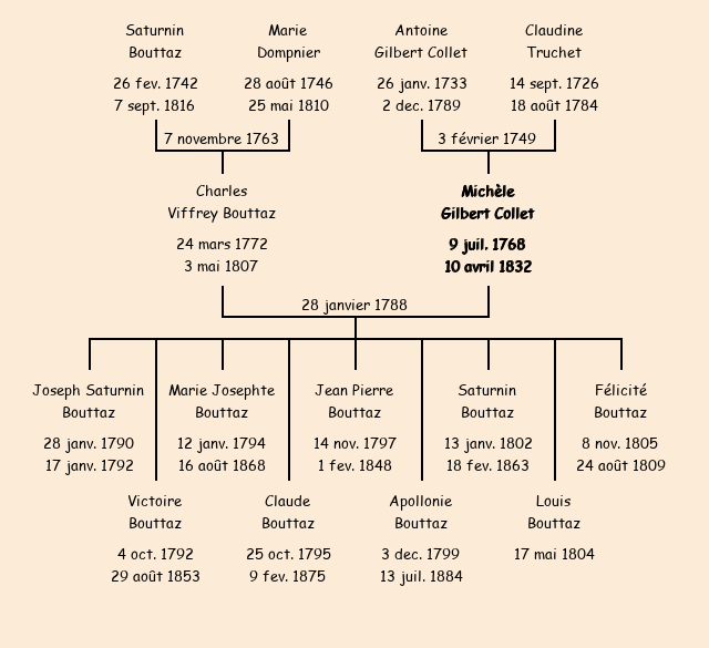 Epoux : Charles Bouttaz, fils de Saturnin (notaire royal) et de Marie Dompnier |