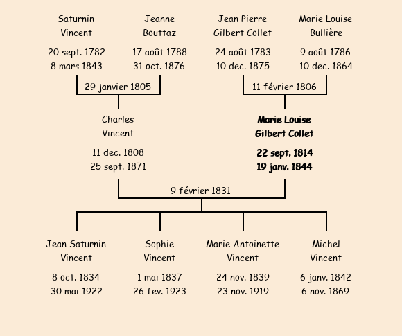 Epouse : Marie Louise Gilbert Collet, fille de Jean Pierre et de Marie Louise Bullière |