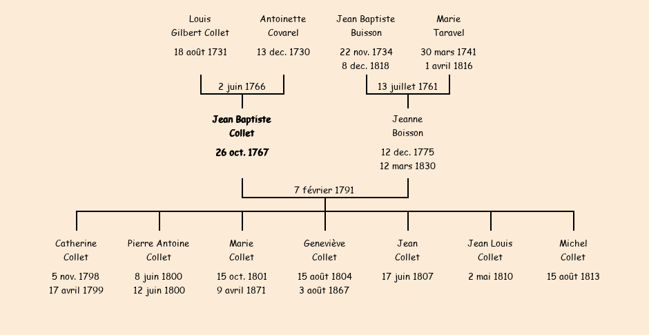 Epoux : Jean Baptiste Collet, fils de Louis et de Antoinette Covarel |