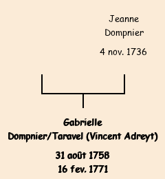 Mère : Jeanne Dompnier, fille de Jean Baptiste | Marraine : Gabrielle Vincent (épouse du susdit Jean Baptiste Dompnier) |
