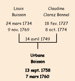 Mère : Claudine Claraz Bonnel | Marraine : Urbaine Anselme (épouse du parrain) |