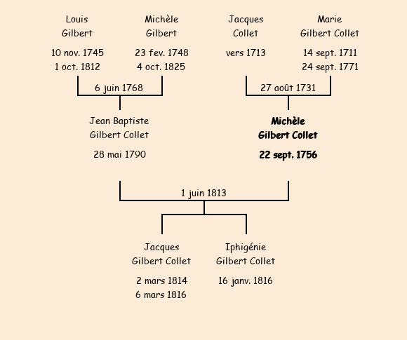 Mère : Marie Gilbert Collet | Marraine : Michèle Anselme (épouse de Georges Gilbert Collet) |