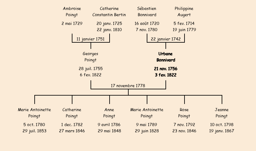 Epoux : Georges Poingt, fils de Ambroise et de Catherine Constantin (d'Albiez le Vieux) |