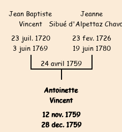 Père : Jean Baptiste Vincent | Parrain : Pierre Opinel (d'Albiez le Vieux) |