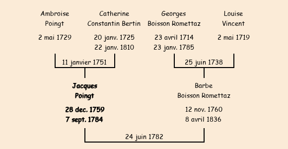 Epoux : Jacques Poingt, fils de Ambroise et de Catherine Constantin |