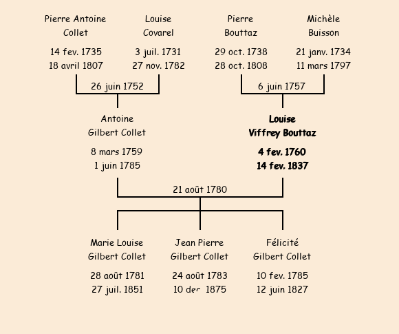 Epoux : Antoine Gilbert Collet, fils de Pierre Antoine et de Louise Covarel |
