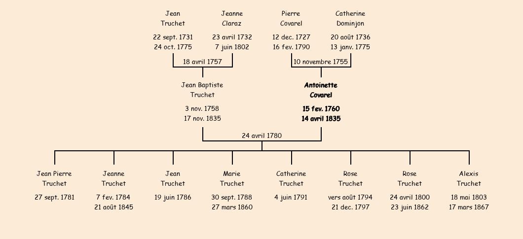 Epoux : Jean Baptiste Truchet (de l'Alpettaz), fils de feu Jean et de Jeanne Claraz |
