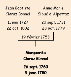 Mère : Jeanne Marie Sibué | Marraine : Marguerite Claraz Bonnel (fille de Louis décédé) |