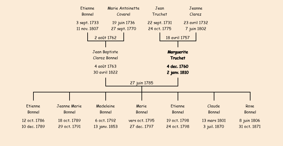 Epouse : Marguerite Truchet, fille de feu Jean et de Jeanne Claraz |