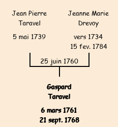 Mère : Jeanne Marie Drevoy | Marraine : Jeanne Marie Taravel (fille du même Gaspard) |