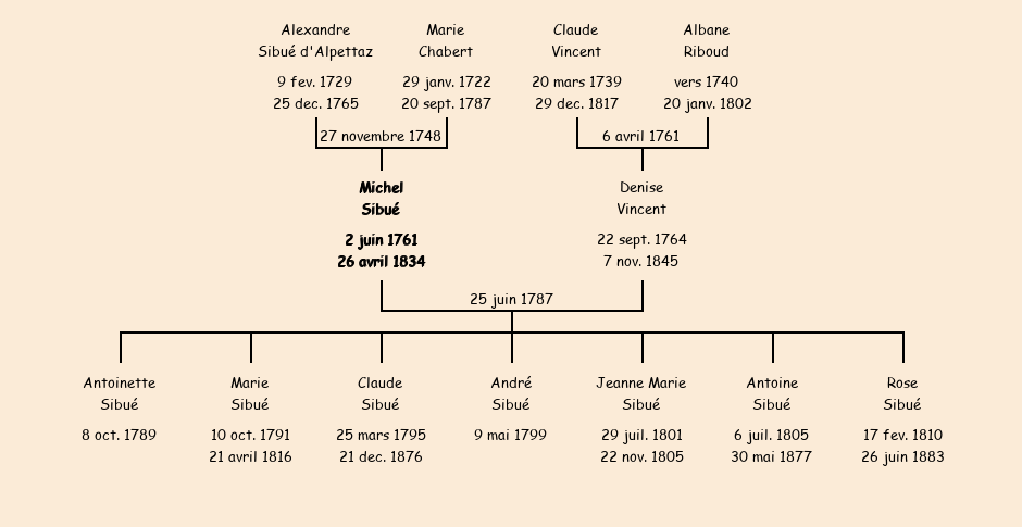 Père : Alexandre Sibué | Parrain : Michel Claraz Bonnel (fils de Jean Baptiste décédé) |