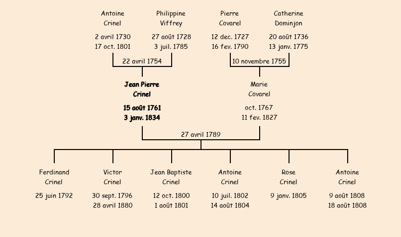 Epoux : Jean Pierre Crinel, fils de Antoine et de feue Philippine Viffrey |