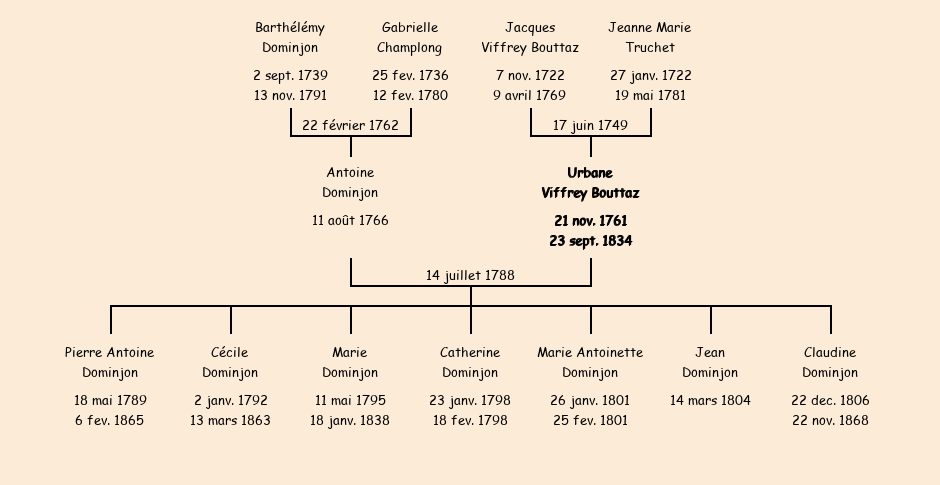 Mariée (26 ans) avec Antoine Dominjon (21 ans) le 14 juillet 1788 à Fontcouverte ![]() |